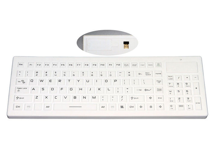 O SKB-126-WL da KINGLEADER é um teclado médico Wirelss à prova d'água com Numeração Pad e um local dedicado para imprimir logotipo personalizado.